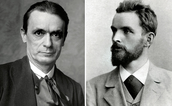 오스트리아의 철학자 루돌프 슈타이너(왼쪽)와 독일의 경제학자 실비오 게젤. 이들은 돈이 목적이 아니라 수단이 되도록 하는 가장 자연스러운 방법이, 돈에 사회적 생명과 수명을 명시적으로 부여해 자기증식 능력을 제한하는 거라고 믿었다.한겨레 자료