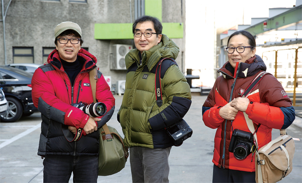 왼쪽부터 K2 ‘마조람3’을 입은 정용일 기자, 코오롱스포츠 ‘헤스티아’를 입은 박승화 기자, 블랙야크 ‘에어로원’을 입은 탁기형 선임기자.김명진