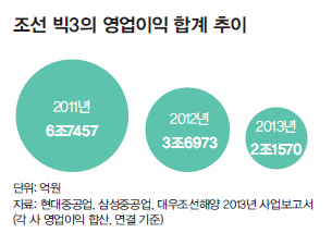 한 증권사 연구원은 “2011년과 2012년에 저가 수주한 물량이 실적에 반영되면서 수익률이 크게 떨어진 상태다. 해양플랜트도 조선소들이 건조 경험이 부족해 시행착오를 거치면서 수익성을 당분간 높이기 어렵다”고 분석했다. 한편으론 저가 수주 경쟁에서 살아남은 조선소는 경기가 좋아졌을 때 선박 계약을 ‘싹쓸이’할 기회도 가지게 된다.