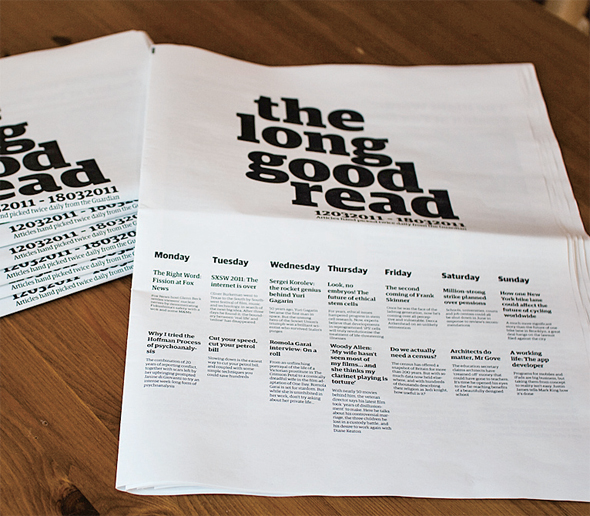 〈가디언〉과 ‘뉴스페이퍼클럽’이 로봇 알고리즘을 써서 만든 주간지 〈더롱굿리드〉.대니얼캣 제공. CC BY-SA
