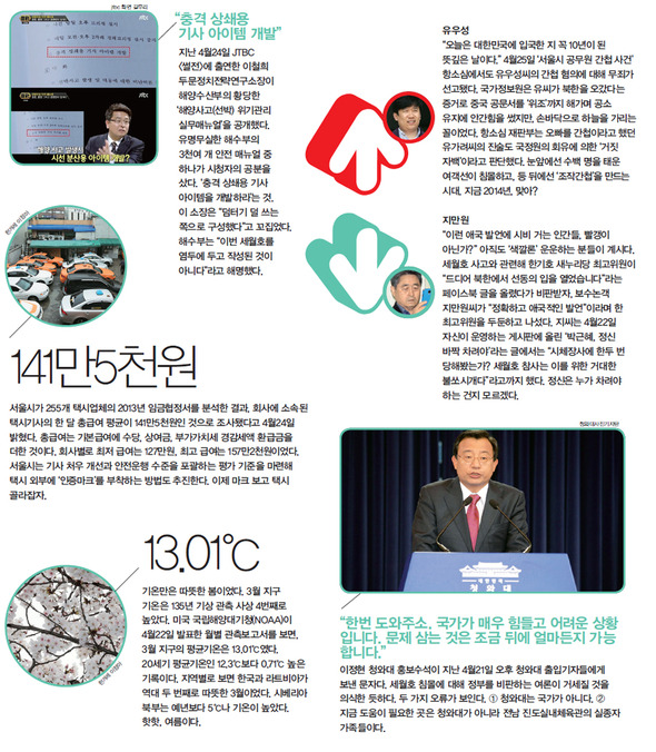 페이스북 0트위터 0공유네이버블로그카카오스토리카카오톡 공유하기스크랩프린트크게 작게 <한겨레21> 1009호 세월호 참사 특집호 주요 기사 • [표지이야기] 폐허에 성난 눈만이 서성인다 • [표지이야기] 상처받은 10대 카톡 채팅 • [표지이야기] 단원고 3일간의 기록 -“꽃 아직 예쁘다, 다 같이 사진 찍으러 가자” • [표지이야기] 돈만 좇은 ‘탐욕의 운항’ • [표지이야기] 정혜신 박사와 나눈 ‘PTSD 포켓북’ 같은 인터뷰 “슬픔 속으로 뛰어드세요” • [표지이야기] 류희인 전 NSC 사무차장 인터뷰 “캐비닛에 처박힌 매뉴얼이 2800여권” 한겨레와 함께 걸어주세요섬세하게 세상을 보고 용기있게 기사를 쓰겠습니다.후원하기후원제 소개좋은 언론을 향한 동행,한겨레를 후원해 주세요한겨레는 독자의 신뢰를 바탕으로 취재하고 보도합니다.후원하기후원제 소개당신의 가치를 후원으로 얹어주세요평화를 갈망하는 마음, 평등을 지향하는 마음,환경을 염려하는 마음...후원하기후원제 소개����바글바글 뉴스바글바글10 바글바글10 바글바글10한겨레21 인기기사제 1585호20251027차례보기지난호보기낱권구입구독신청한겨레 인기기사
