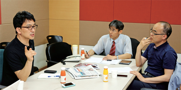 최근 공개된 <뉴욕타임스>의 ‘혁신보고서’가 미디어 업계를 중심으로 큰 화제를 모으고 있다. 오랜 전통을 지닌 유력 신문이 ‘디지털 시대에 어떻게 변해야 할 것인가’에 대한 내부의 고민과 과제, 한계를 솔직하게 담아냈기 때문이다. <한겨레21>은 <뉴욕타임스>의 혁신보고서가 한국 미디어 산업에 주는 의미를 짚어보는 전문가 좌담을 마련했다. 좌담은 지난 6월3일 오후 서울 공덕동 한겨레신문사 4층 회의실에서 열렸다. 사회는 구본권 사람과디지털연구소 소장(가운데)이 맡았고, 강정수 연세대 커뮤니케이션연구소 전문연구원(왼쪽)과 김익현 <아이뉴스24> 글로벌리서치센터 센터장이 토론을 벌였다. _편집자