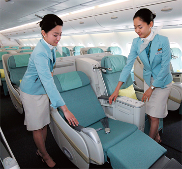 대한항공 A380 기종의 프레스티지(비즈니스)석의 모습.