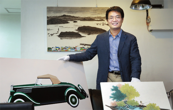 10월8일 오후 서울 삼성동 사무실에서 만난 박의규(34) 오픈갤러리 대표는 이처럼 ‘부익부 빈익빈’으로 고착화된 미술품의 유통 구조에 새로운 생태계를 키우겠다며 뛰어든 사업가다. 한마디로 그는 ‘미술품 중개인’이다. 그러나 기존 갤러리와는 다른 방식을 추구한다. 오픈갤러리에서 취급하는 작가의 미술품도 다르고, 대중과 연결해주는 방법도 새롭기 때문이다.
