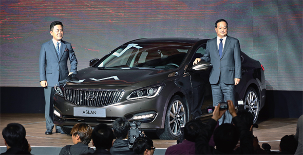 김상대 현대차 국내마케팅실장은 10월30일 아슬란 출시 행사장에서 “국내시장에서 대형 고급차 시장 수요가 증가하고 있다. 시장 세분화 차원에서 제네시스(후륜구동)와 구별되는 세단을 내놓았다”고 했다. 현대차 모델끼리 고객을 뺏는 ‘시장 간섭’을 막으면서 고급차 수요를 잡으려 노력했다는 설명이다.