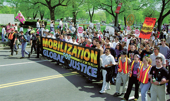 2000년 국제통화기금(IMF)-국제부흥개발은행(IBRD) 회의에 항의하며 미국 뉴욕 거리를 행진하는 비정부기구(NGO) 대표들. 한겨레