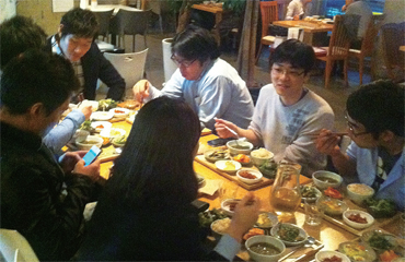 ‘집밥’을 통해 모인 사용자들이 음식점에서 이야기를 나누고 있다. 집밥 제공