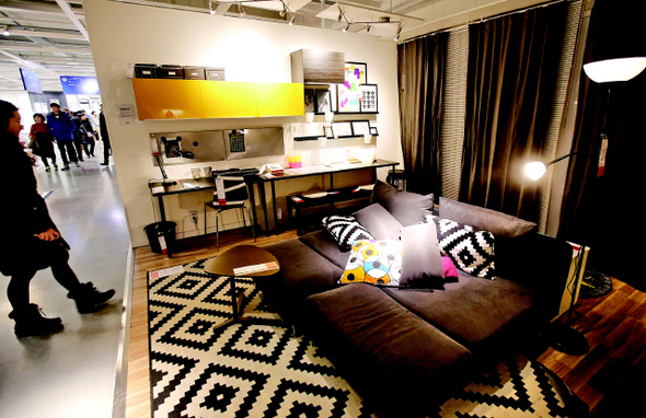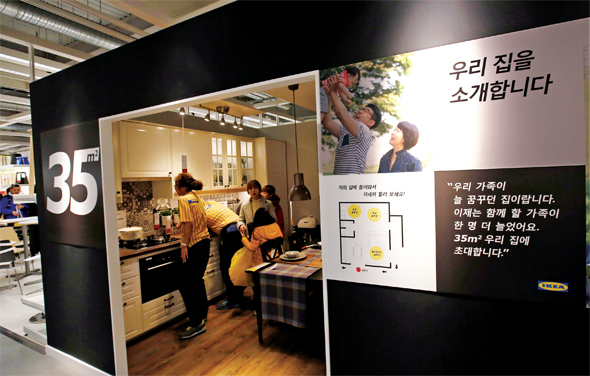 지난해 12월 문을 연 이케아 광명점에는 평일에도 2만~3만 명의 발길이 끊이지 않는다. 5만9천m²에 이르는 매장 2층에는 실제 살고 있는 집처럼 꾸며놓은 65개의 쇼룸이 있다. 정용일 기자