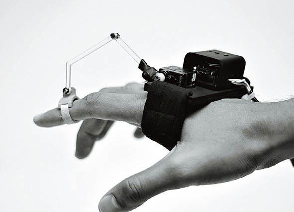 출발은 늘 그렇듯 호기심이었다. ‘사람 몸에 기술을 좀더 밀착시키면 특정한 행동을 유도하는 걸 넘어 학습까지 할 수 있지 않을까?’ 예컨대 사람 손을 조종해 피아노를 치거나 그림을 그리게 하고, 반복 훈련을 거쳐 나중에는 로봇 없이도 피아노를 잘 치고 그림을 잘 그릴 수 있게 된다면? 마침 ‘웨어러블’이란 꼬리표를 달고 온갖 기기들이 앞다퉈 인체에 기술을 덕지덕지 붙일 때였다. 게다가 다타는 취미 수준을 넘어 직접 로봇을 만들어 쓰는 엔지니어이자 디자이너였다. 다타는 어린 시절 자기 손을 잡아 이끌며 알파벳을 가르쳐주던 선생님을 떠올렸다. 그는 ‘그림 가르치는 로봇 팔’을 직접 만들어보기로 했다. 무엇보다 그런 기계를 직접 만들어보는 일 자체가 그에겐 재미있고 흥분되는 일이었다.