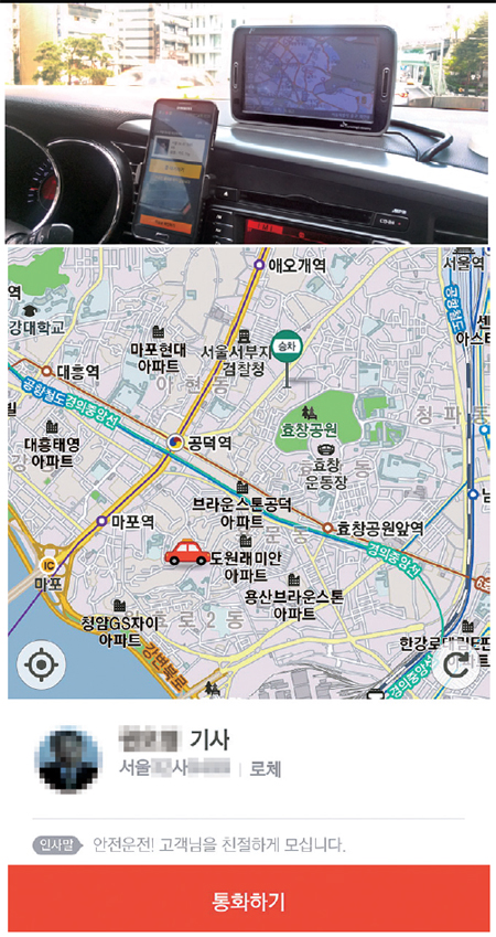 택시기사 권아무개(56)씨는 “똑똑한 스마트폰”이라고 칭찬을 아끼지 않았다. “기존 택시콜 서비스는 손님이 부른 곳으로 가려면 손님과 통화도 해야 하고 번거로운데, 택시앱은 간편하다.” 택시콜 서비스를 통해 승객을 받으면 택시기사가 콜비와 통신비로 한 달 평균 6만~7만원을 내야 했는데, 택시앱(현재)은 내는 게 없다고 권씨는 말했다.