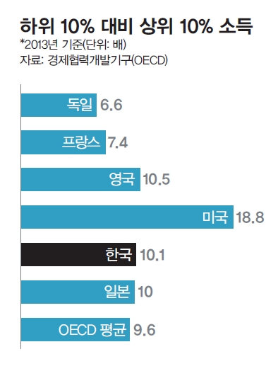 OECD 역시 2014년 말 경제성장의 최대 걸림돌로 소득 불평등을 지목하는 보고서를 내놓았다. OECD는 ‘소득 불평등이 경제성장에 미치는 영향’이라는 제목의 보고서에서 “1980년대에는 소득 상위 10%가 소득 하위 10%보다 7배 더 많은 소득을 가져갔으나 현재는 9.5배 더 가져가고 있다”고 분석했다. 또한 “소득 불평등 확대는 성장에 영향을 끼친 가장 큰 단일 변수”이며 분명한 부정적 영향을 끼치고 있다고 분석했다.