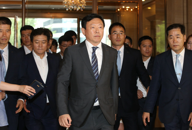 신동빈 롯데그룹 회장이 8월3일 일본에서 돌아온 직후 아버지 신격호 명예회장을 만나기 위해 서울 소공동 롯데호텔로 들어서고 있다. 한겨레 신소영 기자