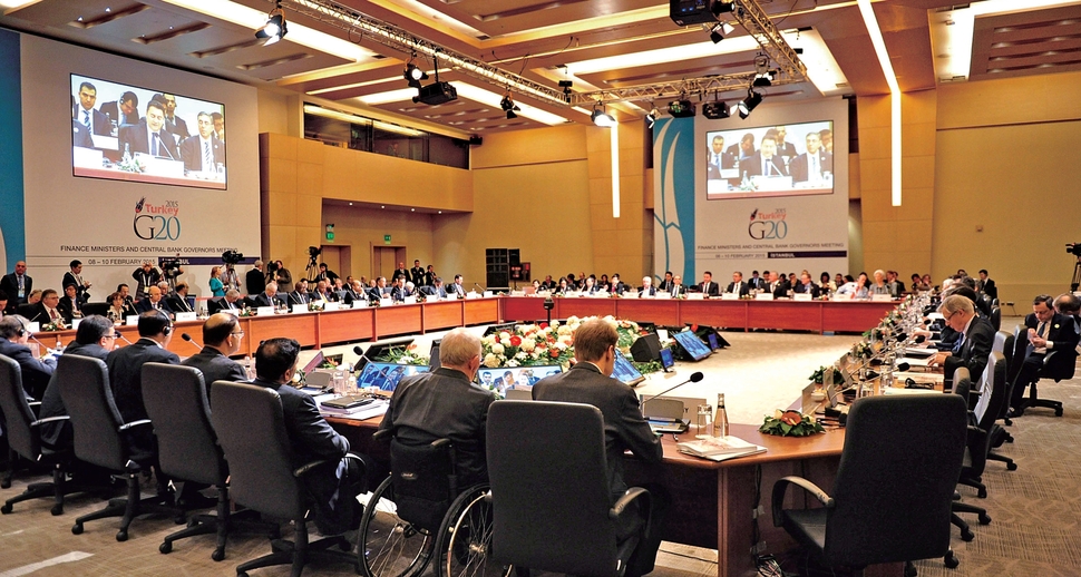 지난 2월10일 터키 이스탄불에서 열린 주요 20개국(G20) 재무장관·중앙은행장 회의 참석자들이 경제 및 금융 구조 개혁에 대한 논의를 위해 머리를 맞댔다. 연합뉴스