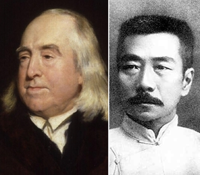 제러미 벤담(왼쪽)은 국가 정책의 최종 목표로서 행복을 주장했고, 루쉰(오른쪽)은 새해가 되면 행복을 주제로 한 글을 곧잘 썼다. 왼쪽부터 위키피디아, 한겨레