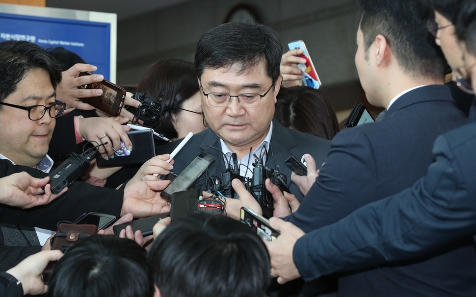 지난 4월9일 원승연 금융감독원 부원장이 여의도 금감원 기자실에서 유령주식 사태와 관련한 대책을 설명하고 있다. 한겨레 김정효 기자