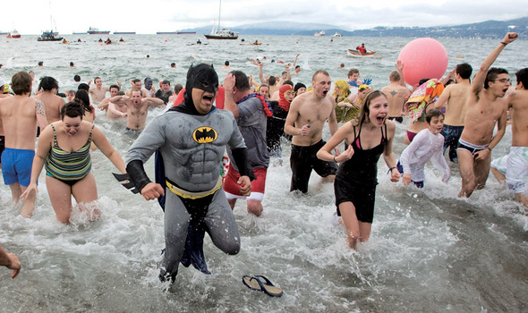 새해 첫날, 캐나다 브리티시컬럼비아주 밴쿠버의 잉글리시 베이에서 열린 ‘북극곰 수영대회’(Polar Bear Swim)