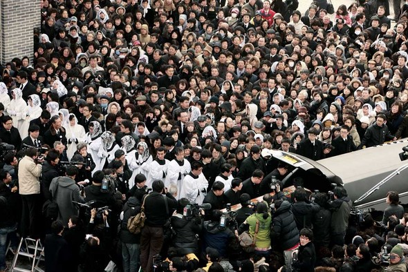 고 김수환 스테파노 추기경의 관이 2월20일 서울 명동성당 앞 마당에서 운구차에 실리고 있습니다. 성당에 모인 많은 신도와 시민들이 안타까운 표정으로 ‘큰어른’이 떠나는 모습을 지켜봤습니다. 김 추기경은 이날 경기 용인 천주교 공원묘지 성직자 묘역에 잠들었습니다.