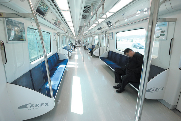 3월28일 오후 김포공항에서 인천공항까지 가는 공항철도. 전동차 안 풍경은 을씨년스럽기만 하다. 전동차 한 량에 50대 아저씨 혼자 고개를 숙인 채 졸고 있다. 다른 칸에서는 20대 여성 혼자 휴대전화를 붙들고 있다. 중간역에서 새로 타는 승객은 거의 없다. 그나마 얼마 안 되는 승객들마저 하나둘 내려 사라졌다. 출퇴근 때를 제외하면 낮 시간대 이용객은 모두 40~50명 수준이고, 이보다 더 적을 때도 있다는 게 전동차 관계자의 설명이다.