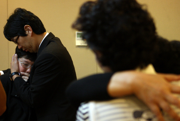 9월11일 오후 경기 고양시 일산의 한 병원 영안실에서 아이가 울고 있다. 어울리지 않는 검은 상복을 입은 채 슬픔으로 상기된 얼굴로, 아버지를 잃은 아이가 흐느끼고 있다. 살아남은 이들은 너나없이 서로를 보듬고 있다. 참아낼 수 없는 슬픔을 달래고 있다. 어디서도 ‘미안하다, 잘못했다’는 말을 듣지 못한 유가족들이 흐느껴 울고 있다. 북도 남도, 끝내 그 말 한마디 하지 않는다. 비정하다.