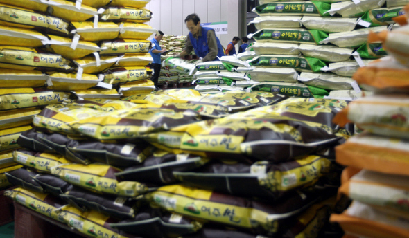 추석을 앞두고 전국에서 도정된 쌀이 모이는 서울 양재동 양곡유통센터. 쌀을 운반하는 인부들의 손길이 바쁘다. 쌀농사가 지난해에 이어 올해도 풍작이어서인지 이곳에도 쌀포대가 가득 들어차 있다. 쌀농사가 풍년이면 농민들의 얼굴엔 웃음이 가득할 듯하지만 공급 과잉으로 떨어지는 쌀값을 바라보는 농민들의 마음은 쓰리기만 하다. 올해 쌀값은 조곡 40kg 기준으로 예년보다 1만원 떨어진 4만5천원에 수매되고 있다. 그렇지만 정부는 이렇다 할 대책을 내놓지 못하고 있다. 농민단체에서는 쌀값 폭락을 막기 위해 정부의 생산비 보장과 인도적 차원의 대북 쌀 지원을 요구하고 있지만 이마저도 받아들여지지 않는다. 풍년을 맞아도 풍년가를 부르지 못하는 농민의 역설을 만져줄 정부의 발 빠른 대책이 필요하다.