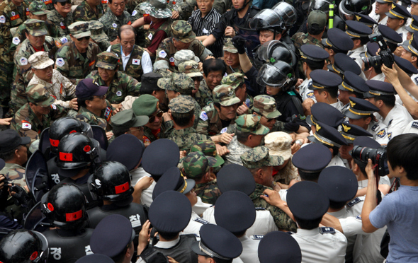 6월17일 오전 대한민국고엽제후유의증전우회 소속 회원들이 서울 종로구 통인동 참여연대 건물로 진입하려 하자 경찰들이 이들을 막으면서 몸싸움이 벌어지고 있다. 수도 한복판에서 군복 입은 민간인들을 경찰이 막는 진풍경이 벌어진 것이다. 이 단체뿐만 아니라 대한민국어버이연합 등 보수 단체들은 참여연대가 유엔 안전보장이사회에 ‘천안함 서한’을 보낸 것을 이적 행위로 규정하고 “빨갱이 처단” 등 극단적인 구호를 외치며 시위를 벌이고 있다.