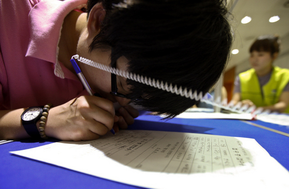 앞이 잘 보이지 않는 한 시각장애인이 몇 분에 걸쳐 구직 신청 용지에 자신의 신상을 적고 있다. 조금이라도 틀릴까 바짝 들이댄 눈을 떼지 못한다. 7월15일 서울 마포구 성산동 월드컵경기장 리셉션홀에서 열린 ‘2010 장애인 구인·구직 만남의 날’ 채용박람회는 취업을 희망하는 많은 장애인들로 분주했다. 접수증을 쓰고 이력서를 쓰는 일이 힘들지만 자신을 채용해줄 직장을 찾는다는 설렘은 어느 누구와도 다르지 않을 것이다. 2005년부터 지난해까지 최종적으로 구직에 성공한 장애인은 430여 명이다. 이번 행사에서는 65개 업체가 상시근로자 100여 명을 채용할 예정이라고 한다. 행사에 참여한 1600여 명의 장애인 모두에겐 장애인과 비장애인이 더불어 살아갈 수 있는 일자리가 절실하다.