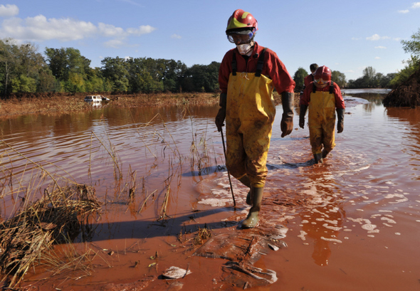 또다시 지구에 경고음이 울렸다. 헝가리 서부 베스프렘주 여커시에 위치한 알루미늄 공장에서 10월4일 저수조 파열로 독성 슬러지가 대량으로 유출되었다. 10월7일 사고현장 인근 마을에서 구조팀이 슬러지에 휩쓸려간 주검을 찾고 있다. 범람한 슬러지가 마을을 덮쳐, 4명이 숨지고 6명이 실종됐으며, 120여 명이 부상당했다.