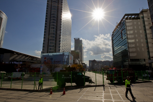 G20 정상회의가 열리고 있는 서울 삼성동 코엑스 주변 도로의 교통이 11월12일 통제되고 있다. 한겨레 김정효 기자 hyopd@hani.co.kr