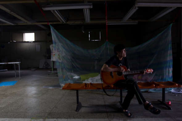 텅 빈 어둠 속에 기타 소리가 흐른다. 높은 벽 작은 창으로 흐린 하늘이 보인다. 이곳은 2008년까지 기타 공장이었다. 공장을 가동할 당시, 유기용제 가스가 가득했던 이곳에 “창문이 있으면 ‘딴생각’한다”며 경영진이 창문을 모두 막았다고 한다. 조합원들은 지금 그 창문 중 하나를 열어놓고 맨바닥에서 먹고 자며 농성한다. 이날은 농성 1981일차. 조합원들은 외부 행사에 나가고 이인근 지회장 혼자 농성장을 지키고 있다.