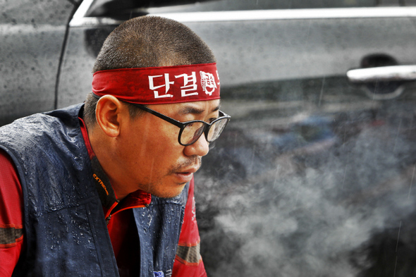 하늘에서 비가 흐른다. 지난 8월22일 오전, 전국금속노동조합 현대자동차 비정규직지회 김응효 조직차장이 현대자동차 울산공장 노조 건물 앞에서 담배에 불을 붙인다. 여름이건만 빗물에 젖은 몸이 차갑다. 내뿜는 담배 연기를 타고 고민과 서러움이 허공으로 흩어진다.