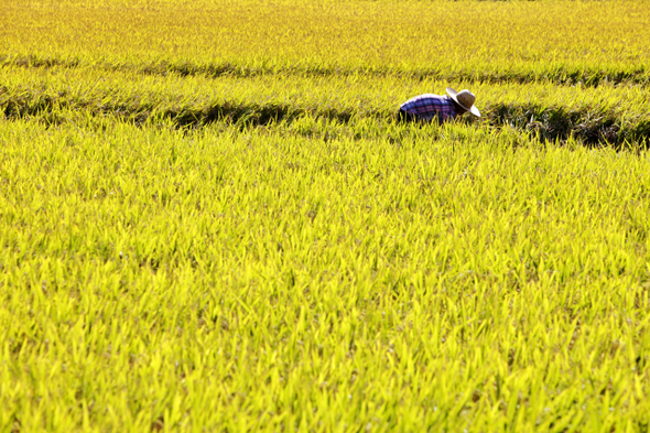 올해 여름은 살인적인 무더위와 연이은 태풍으로 유난히 힘들었다. 가뭄으로 논밭이 타들어가 농민들의 가슴도 함께 타들어갔다. 가뭄이 끝나고 잇따른 태풍으로 과실들이 땅바닥으로 떨어지는 것을 손도 써보지 못하고 지켜봐야만 했다. 가뭄과 태풍이 이어져도 가을이 오자 곡식들은 어김없이 탐스러운 색깔을 자랑한다. 황금들판으로 바뀐 논은 바람이 불 때마다 장관을 이룬다. 지난 9월20일 강원도 철원평야에서 태풍 산바로 쓰러진 벼를 세우는 농부의 표정이 어둡지만은 않다. 황금들판의 넉넉함이 태풍으로 생긴 작은 구멍을 채우고도 넘쳤다.