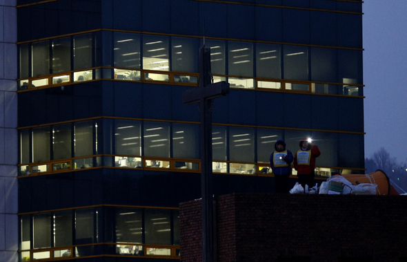 두 명의 해고노동자 여민희(39·왼쪽)·오수영(38)씨가 눈이 잔뜩 쌓인 서울 종로구 혜화동성당 종탑에서 고공농성을 하고 있다. 5년 넘게 이어지고 있는 복직투쟁이다. 이들이 돌아가려는 재능교육의 본사는 도로 건너편에 있다. 걸어서 5분도 안 되는 거리다. 종탑에서 바라보면 건물 안에서 일하는 사람들의 모습이 자세하게 보인다. 오수영씨는 “단체협약과 해고자 복직 문제를 빨리 해결하고자 하는 맘으로 올라왔다. 우리가 농성하고 있는 종탑 맞은편에 재능교육 박성훈 회장의 집무실이 있는데, 고공농성을 하는 우리의 모습을 보고 빨리 문제 해결에 나서주기 바란다”고 말했다. 오씨는 아들과 전화하면 눈물이 날 것 같아 문자로만 대화를 한다. 이들이 하루빨리 종탑에서 내려와 가족과 얼굴을 보며 대화하는 날이 오기를 바란다.