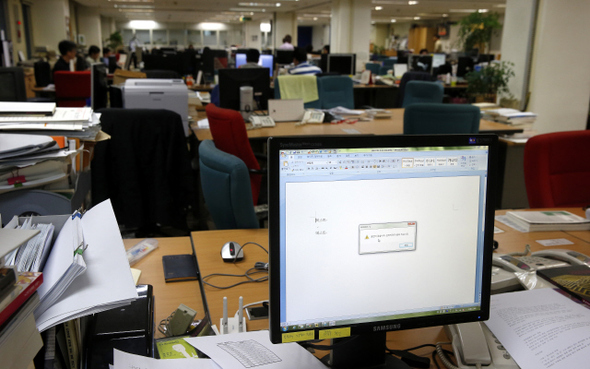 기사 출고 권한이 있는 <한국일보> 편집국 데스크가 출고 버튼을 누른다. ‘출고 완료’라는 메시지가 컴퓨터 화면에 떠야 하지만 ‘권한이 없습니다. 관리자에게 문의하십시오’라는 문구만이 나온다. 회사 쪽이 데스크들의 기사 승인 권한을 막아버렸기 때문이다.