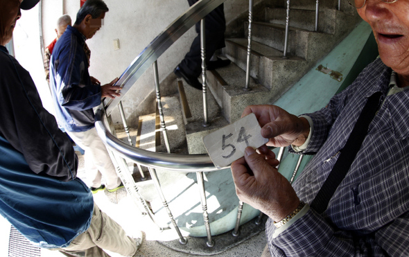 서울 종로구 탑골공원 옆 원각사 무료급식소에서 어르신들이 번호표를 들고 배식을 기다리고 있다. 어르신들이 점심 한 끼 무료로 먹기 위해 배식 시작 30분 전부터 길게 줄을 선다. 10월2일 ‘노인의 날’을 이틀 앞둔 9월30일에는 부산의 다세대주택에서 숨진 지 5년이 넘은 60대 할머니가 발견되었다. 할머니는 추위를 견디기 위해 옷을 아홉 겹이나 껴입고 있었다. 대한민국은 경제협력개발기구(OECD) 회원국 중 노인 자살률이 1위라는 불명예를 안고 있다. 유엔인구기금이 발표한 노인복지지수는 91개국 중 남아프리카공화국(65위), 우크라이나(66위)보다 낮은 67위다. 특히 연금과 빈곤율 등을 반영한 노인소득지수가 90위로 세계 최하위다. 월 20만원씩을 노인들에게 주겠다는 대선 공약을 취임 7개월 만에 공염불로 만들어버렸음에도 한 여론조사 기관에 따르면 노인들의 82%는 ‘박근혜 대통령이 잘하고 있다’고 말했단다. 대한민국은 세계에서 가장 가난하고 외로운 노인들의 나라, 그럼에도 분노하지 않는 노인들의 나라다.