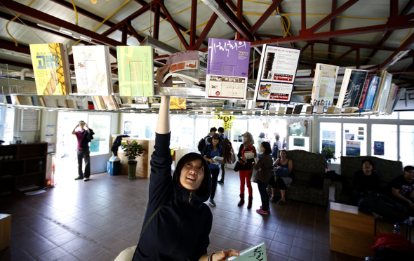 제주 강정마을을 평화의 책마을로 만들기 위한 강정 책마을 십만대권 프로젝트가 지난 10월18일 오후 화려한 막을 올렸다. 강정 평화상륙작전으로 명명된 이번 행사는 17일 오후 인천항에서 크루즈선을 타고 출발한 컨테이너 도서관이 18일 오후 강정마을에 도착해 평화의 도서관으로 탈바꿈하는 프로젝트다. 책 배달부를 자처한 문화예술인과 시민활동가 350여 명이 전국에서 모인 책 3만여 권의 책을 도서관에 채웠다. 한 손엔 책, 다른 한 손엔 평화. 칼로 평화를 지키 려는 강정마을에, 책의 온기로 평화가 스며들기를 희망한다.