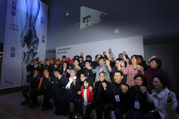 노동자를 죽음으로 내몰고 노동조합을 압박하는 도구로 이용되는 손해배상·가압류 문제를 해결하기 위해 만든 사회적 기구 ‘손배·가압류를 잡자! 손에 손을 잡고’(이하 손잡고) 출범식이 지난 2월26일 오후 서울시청 시민청 이벤트홀에서 열렸다. 이 기구는 지난 몇 년 동안 파업을 벌인 노조에 적게는 수십억원, 많게는 수백억원의 보복성 손해배상과 가압류 판결이 내려져 노동자와 가족들이 고통받는 상황에서 시민사회, 특히 지식인들의 대응이 필요하다는 자각에서 시작됐다. 이에 하종강·조국·은수미·한홍구씨 등이 주변 지식인과 시민사회 인사들과 뜻을 모아 이날 출범식을 열게 된 것이다. ‘손잡고’는 지난 2월 초부터 아름다운재단과 함께 손해배상·가압류 피해자 지원을 위한 ‘노란 봉투 캠페인’을 진행하고 있다. 지속적으로 손해배상·가압류, 업무방해죄와 관련한 피해자들을 지원하는 한편, 손해배상·가압류가 노조 간부뿐 아니라 일반 노조원과 시민들에게까지 무차별로 남발되는 현 상황에서 관련 법·제도 개선을 추진할 예정이다. 피해 당사자들의 증언 및 사례를 기록해 기고, 토론회, 공청회 등 사회적 의제 활동도 계획하고 있다. 사회연대은행을 만들어 손해배상·가압류 관련 사회적 모금운동을 전개하고 플래시몹을 비롯한 다양한 캠페인도 펼칠 계획이다. 2014년 1월 현재 노조에 떨어진 손해배상·가압류는 금속노조 KEC 156억원, 한진중공업 158억원, 현대차 255억원, MBC 195억원, 철도노조 267억원, 쌍용자동차 47억원 등 이미 1500억원을 넘어섰다. 출범식에 참석한 각계 인사가 손을 맞잡고 “함께 손잡고 손배·가압류를 잡자!”고 외치고 있다.