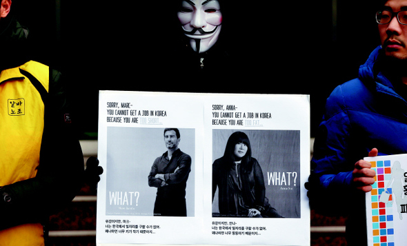 1월22일 오후 서울 중구 태평로 국가인권위원회 앞에서 알바노조와 패션노조, 청년유니온 회원들이 패션계의 신체 차별을 고발하는 기자회견을 열고 인권위에 진정서를 제출했다. 키 165~168cm, 어깨 14 1/2인치~14 3/4인치, 가슴둘레 33인치, 엉덩이 36인치, 몸무게 52~54kg, 55 사이즈 피팅 가능, 이력서에 전신 사진 첨부 등 패션업체들은 취업난을 악용해 신입 디자이너를 채용할 때 실력뿐 아니라 공개적으로 모델과 같은 신체 사이즈를 요구하며 의상모델 인건비를 줄이려 하고 있다. ‘너무 말랐고’ ‘키가 작고’ ‘뚱뚱하기’ 때문에 인간적 모멸감과 수치심을 겪어야 하는 디자이너 지망생들은 차별을 이겨내고 꿈을 이룰 수 있을까.