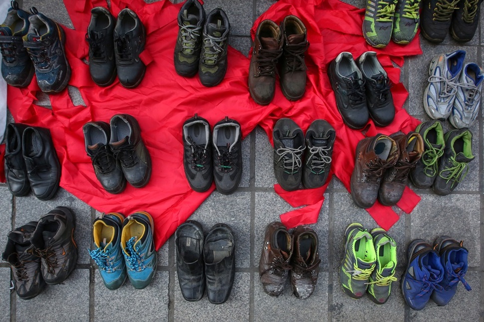 행진에 앞서 열린 집회에선 희생 노동자들의 신발을 모아놓는 퍼포먼스가 펼쳐졌다. 이들은 신발을 보며 죽음으로 항거한 노동자들을 추모했고, 나아가 해고와 비정규직 없는 세상을 만들기 위한 뜻을 모았다.