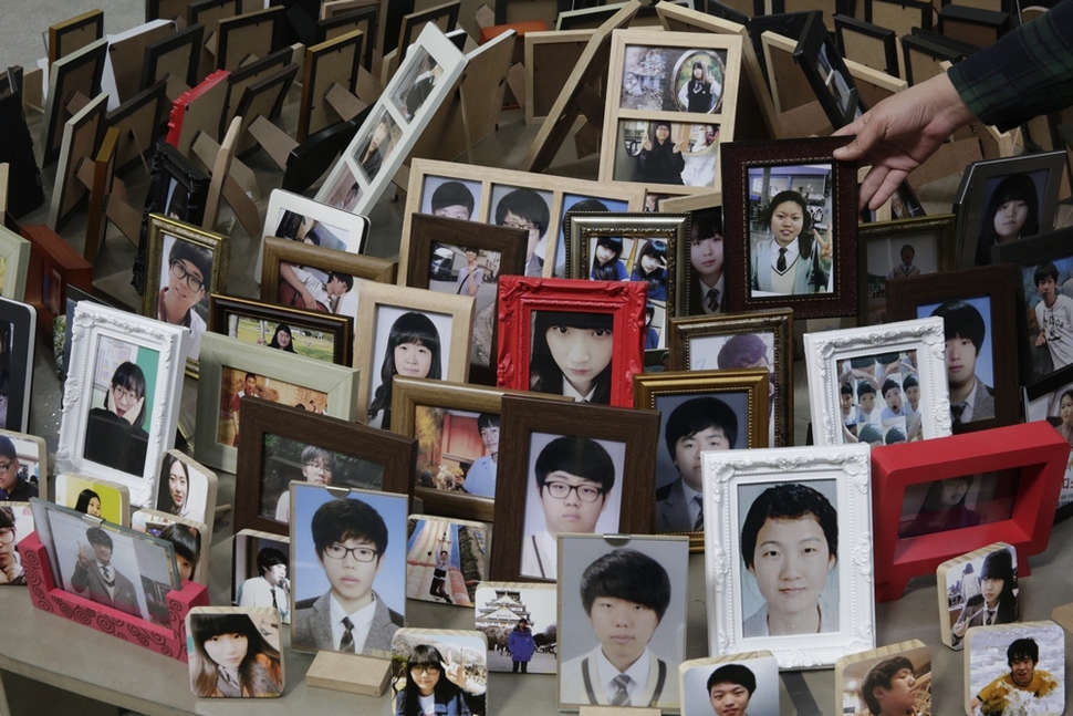 세월호 참사 3주기를 맞아 광주광역시 동구 금남로 5·18민주화운동기록관 낮은 마루에서 열리는 ‘416기억저장소와 함께하는 시민 기억나눔전’에 세월호 희생자들의 사진이 전시됐다. 환하게 브이(V) 자를 그린 발랄한 얼굴의 희생자는 유가족들이 영원히 기억하고 싶은 생전 그대로의 모습이다. 이 행사는 세월호 참사를 기억하고 그때의 아픔을 나누며 비극을 함께 극복하자는 취지로 기획됐다. 경기도 안산 416기억저장소와 5·18민주화운동기록관, 세월호 광주시민상주모임이 주최한 이 전시회는 5월31일까지 계속된다.