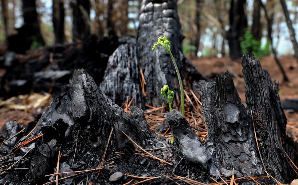 그러나 상처난 자연은 새 생명으로 치유되고 있었다. 타버린 고목에 아기고사리가 피고 뿌리만 남은 나무에서는 작은 새싹이 돋아나고 있었다. 얼마나 많은 세월이 흘러야 예전 모습으로 돌아갈지 모른다. 스스로 자라나기를 기다려본다.