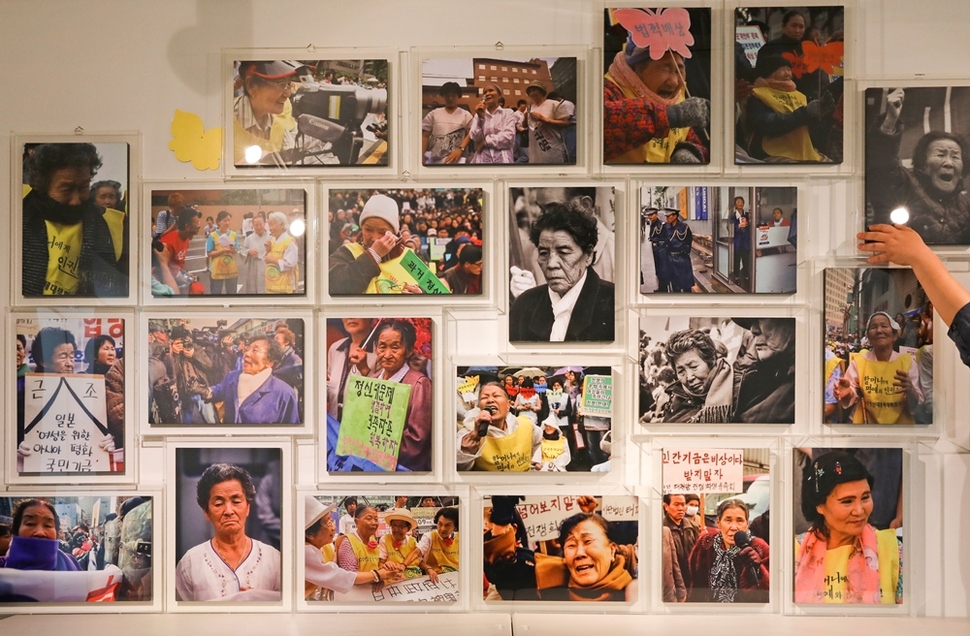 1992년 1월8일부터 매주 수요일 서울 종로구 운니동 일본대사관 앞에서 25년째 이어온 1300번의 외침. 일본 정부는 일본군 ‘위안부’ 제도가 국가 범죄였다는 사실과 그에 따른 당연한 배상을 여전히 외면한다. 이 외침의 올바른 대답을 끝내 듣지 못하고 돌아가신 피해 할머니 22분의 모습을 한데 모았다. 한국정신대문제대책협의회 부설 전쟁과여성인권박물관이 1300차 수요시위를 맞아 ‘수요일, 12시’란 이름의 사진전을 열었다. 생전에 수요시위에 참여하시다 이제는 고인이 된 할머니들의 모습을 박물관 1층에서 10월21일까지 볼 수 있다.