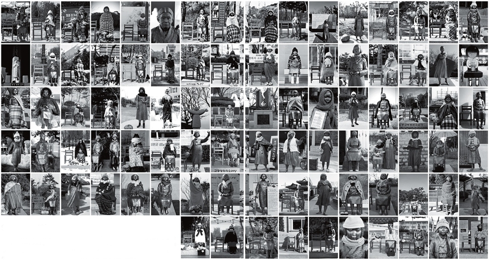전국 90곳에 세워진 ‘평화의 소녀상’ 사진이 한자리에 모였다. 사회다큐사진집단 ‘비주류사진관’ 회원들이 굴욕적인 일본군 ‘위안부’ 문제에 대한 한국과 일본 정부의 12·28 합의 폐기와 일본의 진정한 사죄를 촉구하는 의미를 담아 전국 방방곡곡에 설치된 소녀상을 기록했다. 이 작업에 김현진, 봉재석, 손은영, 안해룡, 이상희, 이창수, 이훈기, 전상규, 정남준, 정정숙, 최인기, 홍현구, 황지웅, 조종완, 진승일 작가 등이 참여했다.