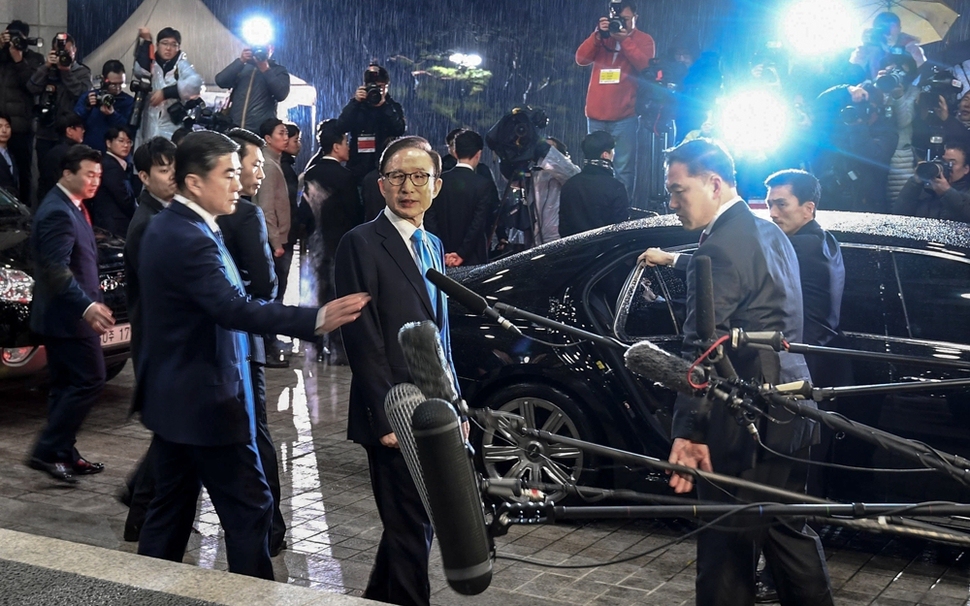 이 전 대통령은 3월14일 서울 서초구 서울중앙지검에서 이뤄진 21시간의 조사에서 대부분의 혐의를 부인했다. 권력 비리로 대통령이 포토라인 앞에 서는 모습을 보는 일이 이 전 대통령의 표현처럼 “역사에서 이번 일로 마지막이 되었으면 한다”.