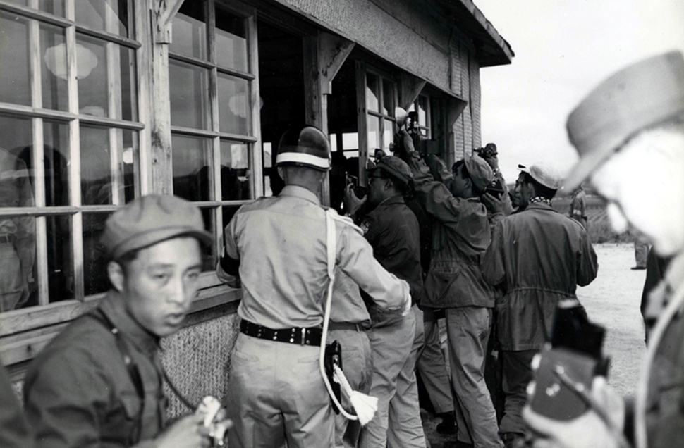 밑에 사진은 판문점 휴전회담장을 취재하기 위해 몰려든 기자들 모습이다. ‘널문리’란 이름을 가진 작은 농촌 마을에 세워진 판문점은 2년에 걸친 휴전회담이 열린 장소로 전세계의 관심을 받았다. 이 사진 또한 국사편찬위원회가 미국 국립문서기록관리청(NARA)에서 수집한 것으로, 1953년 6월 미군이 촬영했다.