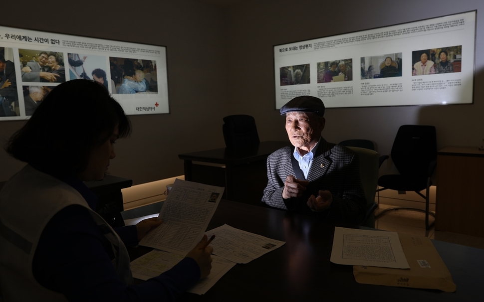 남북 정상이 ‘8·15를 즈음한 이산가족·친척 상봉’이 포함된 판문점 선언을 발표한 뒤, 이산가족들의 기대감이 더욱 커지고 있다. 황해도 옹진 출신 문태삼(87)씨가 5월3일 오전 서울 중구 대한적십자사를 찾아 남북 이산가족 찾기 신청서를 쓰면서, 가족과 생이별을 하게 된 과거의 기억을 설명하고 있다. 문씨는 돌아가신 부모님에 대한 죄스러움과 북쪽 고향에 살아 있을 동생을 보고 싶은 마음을 절절히 풀어냈다. 또 “고령의 이산가족들에겐 시간이 얼마 남지 않았는데, 이번 기회가 마지막이면 어떻게 하냐?”며 불안한 심정을 토로했다.