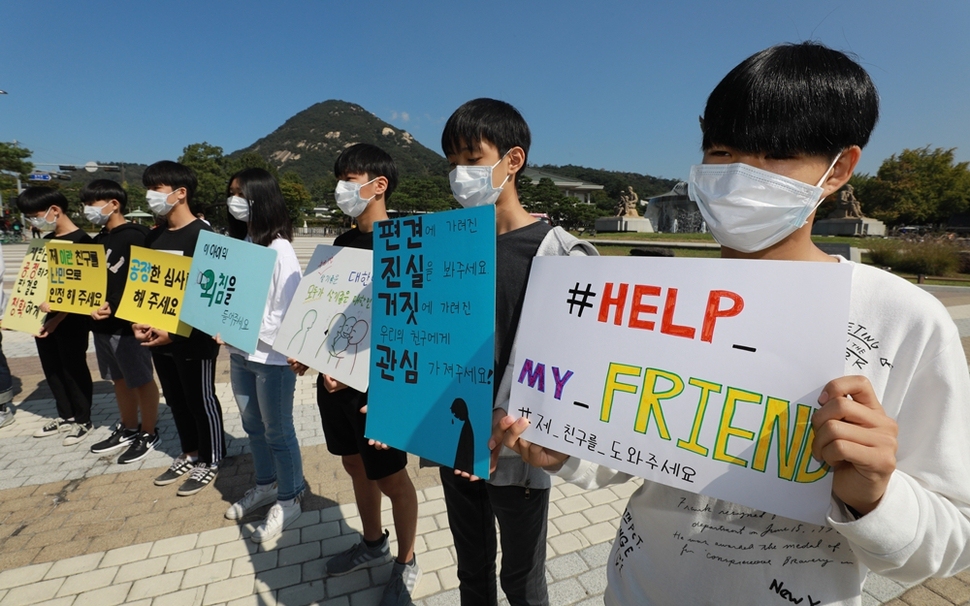 서울 송파구의 한 중학교에 다니는 학생 16명이 10월3일 서울 종로구 청와대 앞 분수대 광장에 모였다. 이란에서 온 친구가 난민지위를 인정받아 함께 학교에 다닐 수 있도록 대통령에게 호소하는 1인시위를 번갈아 하기 위해서다. 사업가아버지와 7살 때인 2010년 한국에 온 ‘이란 친구’ ㄱ군은 초등학교 2학년 때 천주교로 개종했다. 이란에 사는 고모는 이 사실을 알고 “그러고도 사람이냐”며 연락을 끊었다. ㄱ군은 청와대에 보내는 편지에 “저와 아빠는 고모가 저희를 이란의 국가안전부에 고발했을까봐 두렵다”며 난민지위를 신청한 배경을 밝혔다. 무슬림 율법 ‘샤리아’의 적용을 받는 이란에서 개종은 반역죄에 해당한다.