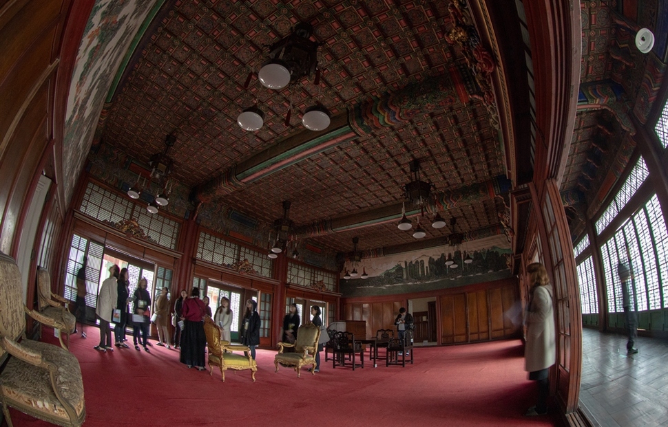 조선의 마지막 왕 순종이 1926년 숨을 거두기 전까지 생활했던 서울 종로구 와룡동 창덕궁 희정당 내부가 한시적으로 공개된 11월8일 오후 시민들이 이를 둘러보고 있다. 조선의 건축 양식에 따라 고풍스럽게 지은 희정당은 임진왜란과 인조반정 때 불탔고, 1833년과 1917년에도 불이 났다. 현재 건물은 1920년에 다시 지었다. 일제가 경복궁 강녕전을 해체해 그 자재를 복원에 쓴 것으로도 알려졌다. 냉·온수가 따로 나오는 세면대부터 현대식 화장실에 유리창과 전등, 유럽풍 가구를 갖췄다. 문화재청은 11월30일까지만 매주 목·금·토요일 오후 2시와 3시에 관람을 허용한다.