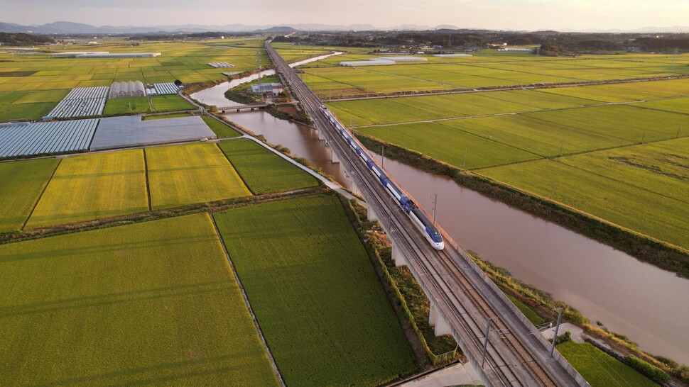 추석연휴 다음날인 9월23일 해거름 녘 노을빛이 짙게 밴 만경강 지류 위로, 목포를 출발해 서울로 가는 호남선 고속열차가 김제평야를 가로질러 달리고 있다. 만경평야와 더불어 김만경평야라고도 불리는 우리나라 최대의 곡창지대인 김제평야가 가을걷이를 앞두고 황금빛으로 물들었다. 이곳은 일제강점기 미곡 수탈의 아픈 역사를 품고 있어 조정래 작가의 대하소설 <아리랑> 배경이 되기도 했다.