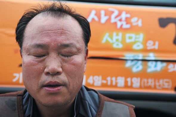 순례단 진행을 맡고 있는 생태지평연구원의 명호씨는 “쉴 때 안마나 지압을 해드리고 싶지만 너무 힘들고 지친 상태라 그 자체가 아픔이 돼서 못한다. 그냥 살살 몇 번 주물러드리고 만다”며 안타까워했다.