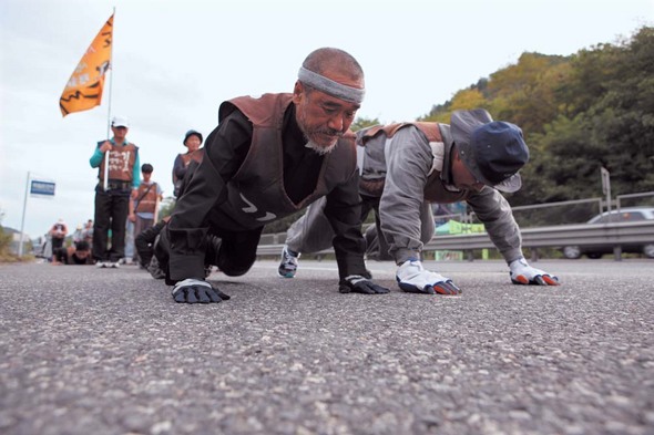 수경 스님과 문규현 신부가 ‘사람과 생명, 평화의 길을 찾아’ 지난 9월4일 전남 구례 지리산 노고단에서 순례길을 나선 지 10월1일로 28일째. 오체투지는 이마와 사지를 땅바닥에 닿도록 절하는 불가의 오래된 수행법이다. 나이 60이 넘은 이들에게는 무리다. 그런데도 이들은 달팽이처럼 기어 계룡산과 임진각을 거쳐 묘향산까지 가겠다고 한다. 왜 이런 고행을 자처하는 것일까.